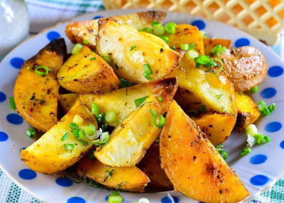 Картофель фри — то есть порезанный соломкой и зажаренный в большом количестве раскаленного масла — один из самых популярных видов фастфуда в мире.Чтобы полакомиться хрустящей картошкой, не нужно идти в кафе: это вкусное блюдо можно приготовить в духовке за час. Согласно рецепту, предварительно порезанную соломкой картошку немного подержите в растительном масле и специях, а потом запекайте в духовке на листе пергамента или фольги до появления хрустящей корочки. Имейте в виду: блюдо не подойдет тем, кто придерживается диеты, так как оно достаточно калорийное. Но если хотите сделать настоящий ужин в стиле фастфуд, приготовьте еще и сырный соус.По-деревенски: с кожурой