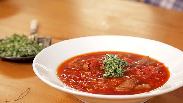 Сибирский борщ, несмотря на то, что имеет общее название с европейским родственником, отличается в приготовлении. Для того, чтобы достичь насыщенного вкуса, в него добавляют приправу из чеснока, зелени и копченого сала уже после того, как налито в тарелки.