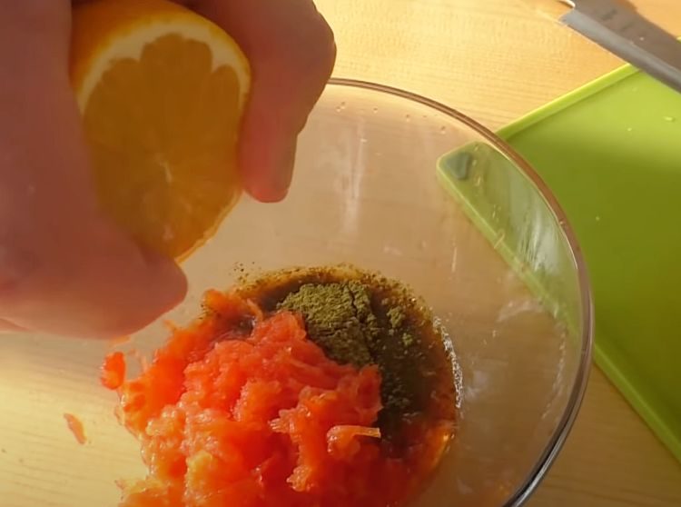 Сначала подготовьте соус. Пропустите через пресс 3 зубчика чеснока, добавьте 1 чайную ложку соли, 1 столовую ложку специй для рыбы, половину нарезанного на мелкой терке сладкого перца, сок одного лимона и перемешайте. Если вы любите острое, можно добавить красный жгучий перец.