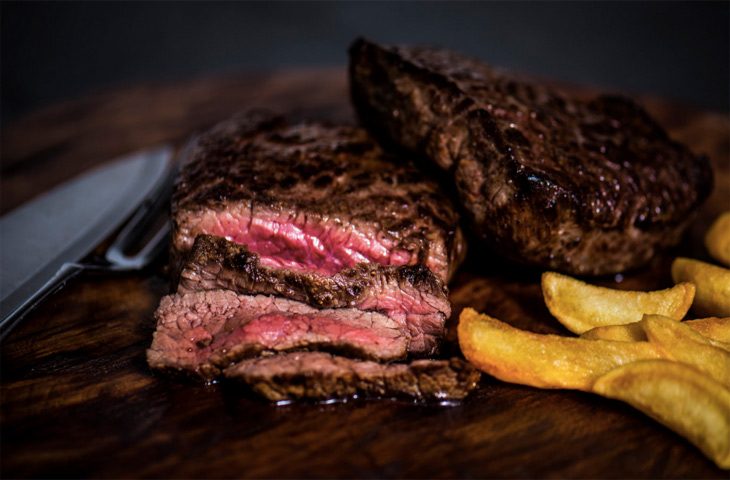 В случае качественной говядины — прожарка является лишь делом вкуса. Вы сами выбираете до какой температуры доводить мясо в центре куска. С кровью, либо хорошо прожаренный стейк будет совершенно безопасным для здоровья. В цельном куске говядины бактерии, как правило, присутствуют только на поверхности и даже при непродолжительной термической обработке погибают. При приготовлении говядины во внимание также необходимо принять тот факт, что во время отдыха мяса его внутренняя температура, а следовательно и степень прожарки, будет продолжать повышаться.