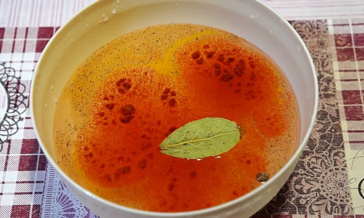 В отдельной миске смешайте немного воды с солью, куркумой, смесью перцев, паприкой и лавровым листом. По желанию можно добавить в эту смесь также томатную пасту для большей ароматности и вкуса.