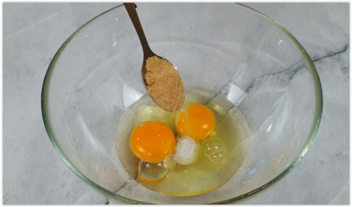 В миску разбиваем 2 яйца.