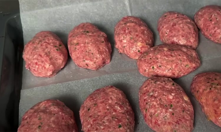 Важно перемешивать фарш долго — около 15, чтобы он изменил свою структуру, и также его надо отбить.