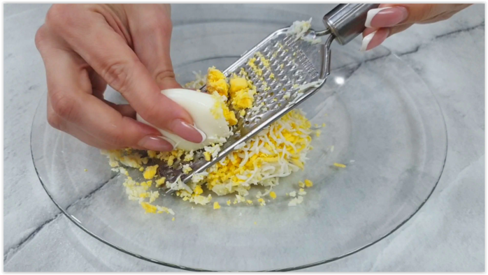 Берем 4 филе селедки и выкладываем на доску, застеленную пищевой пленкой. Накрываем сверху еще одной пищевой пленкой и слегка отбиваем.