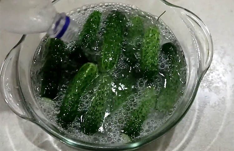 Вместо обычной воды рекомендуется использовать газированную минералку. После залития огурцов газированной минералкой, их следует настаивать на протяжении суток, чтобы они впитали ароматы чеснока, укропа и пряностей. На следующий день они уже будут готовы для подачи к столу.