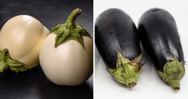 Предки современного баклажана чаще всего были белого цвета (но бывали и светло-синего и жёлтого) и имели более круглую форму.