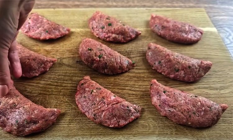 Фарш принято пускать на котлеты, но намного вкуснее будет приготовить его иначе, с начинкой внутри. Блюдо отчасти напомнит классические чебуреки, вот только теста здесь не будет вовсе.