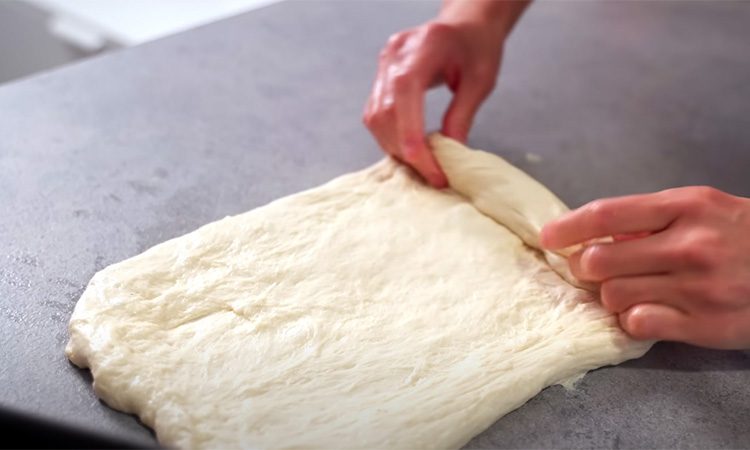 Дайте тесту подойти в теплом месте в течение 40 минут. Затем сформуйте его в прямоугольник и снова оставьте подходить в течение 30-40 минут.