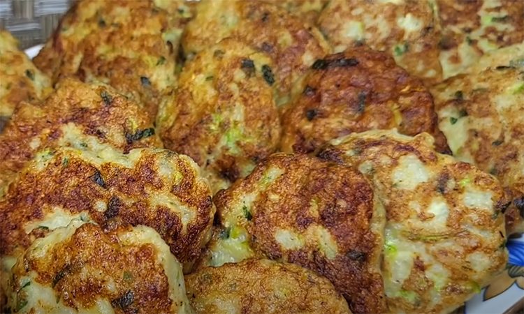 Теперь разогреваем в сковороде немного растительного масла. Порционно выкладываем на нее кабачковую смесь и просто обжариваем с каждой стороны до румяной корочки.
