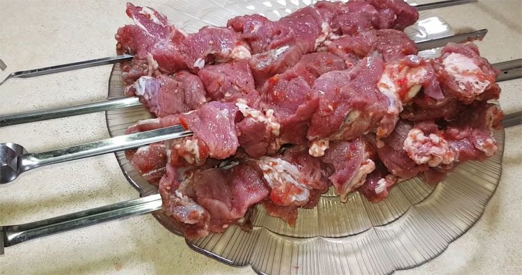 Подготовка мяса: Рекомендуется взять достаточное количество мяса, примерно 3 кг, так как это блюдо получается очень вкусным и будет съедено быстро. Порежьте мясо на куски удобного размера для шашлыка.