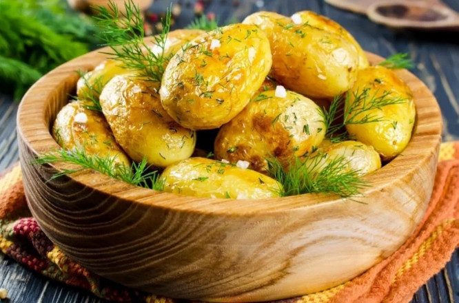 Заливаем им картошку и ставим на режим «выпечка» еще на полчаса. Получится очень вкусная запеченная картошка, которую можно подать с рыбой и курицей, а также как отдельное блюдо.