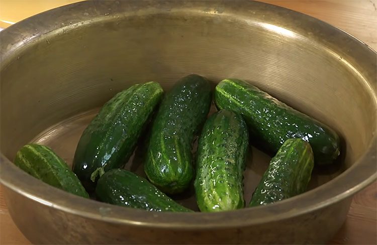 Подготовьте огурцы: вымойте их и выложите в удобную миску.