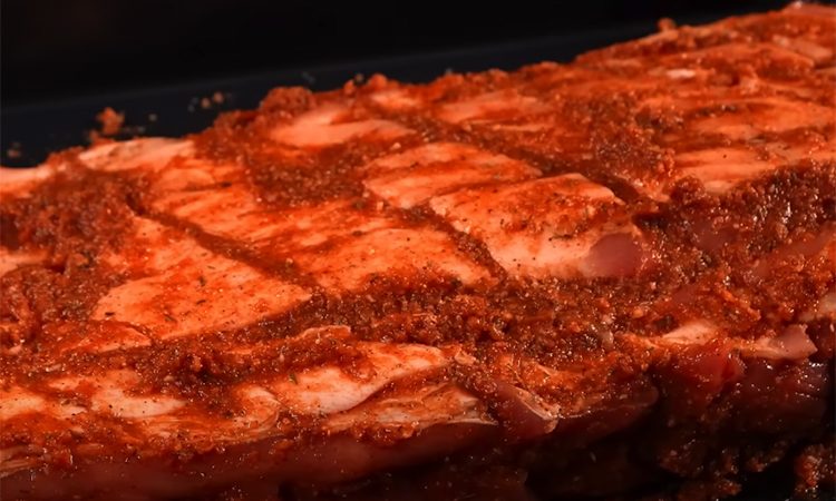 Ребрышки промываем, убираем пленку. Делаем глубокие надрезы, но разделять сами ребра до конца не нужно. Теперь в блендере измельчите лук и кимчи, смешайте их с перцем, тмином, паприкой, кориандром и солью. Получившимся маринадом очень тщательно промажьте мясо.