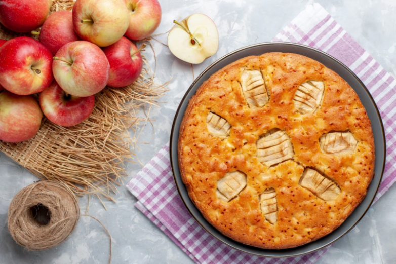 Оставшееся яблоко разрежьте на дольки и выложите их на поверхности теста, присыпьте сверху сахаром