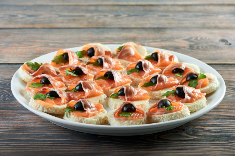 Оставшуюся рыбу затем стоит нарезать на длинные тонкие полоски. После свернуть каждый такой кусочек в спираль — это будет украшение розочка. После установите эту розочку из рыбы в центр тарталеток.