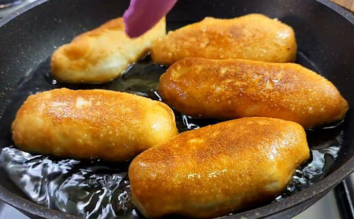 В центр каждого распределяем картофельную начинку, скрепляем края. Разогреваем в сковороде растительное масло и просто обжариваем пирожки до золотистости.