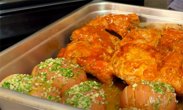 Сделать вкуснейший ужин на всю семью можно и без лишней траты времени, по нашему рецепту все будет готово уже через полчаса. В основе рецепта простейшие ингредиенты, свиные ребрышки и картофель. Однако готовить мы будем их не так, как принято обычно: мясо получится невероятно нежным, картофель же будет таять во рту.