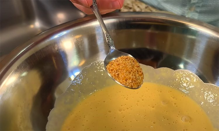 Для мягкости вкуса сначала обжариваем мелко нарезанный лук на высокой температуре. Ждем, пока он карамелизуется, потом сразу снимаем в сторону. В отдельную миску разбиваем яйца, вливаем к ним сливки. Добавляем горчицу, сушеный чеснок и чайную ложку соли, вливаем вустерский соус.