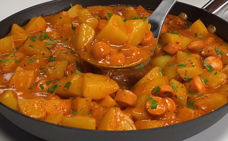 Картофельный гуляш из сосисок. Не блюдо, а находка
