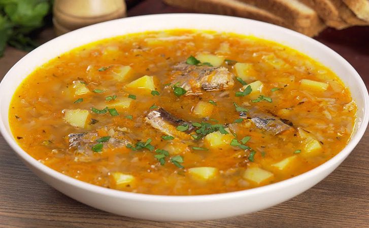 Ароматный рыбный суп проще всего сварить из банки обычных консервов, идеально подойдет самая распространенная сайра в масле. Похлебка получается настолько густой и насыщенной вкусом, что все принимают ее за уху на красной рыбе.