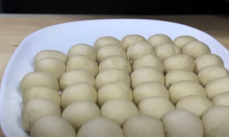 Разделите тесто на небольшие порции, скатайте их в шарики. Раскатайте каждую порцию в тонкий круг (сохраняя центр более толстым). Постарайтесь скатать тесто как можно тоньше, оставив центр чуть толще.