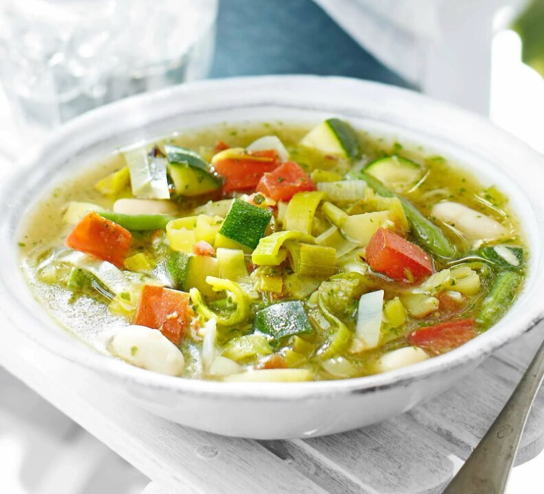 10. Затем убавьте огонь до минимального и варите овощной суп 20 минут. Суп хоть и низкокалорийный, но очень сытный.