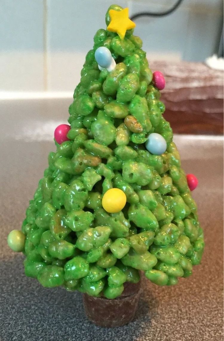 Съедобная рождественская елка, которую можно сделать из чак-чака, зефира и покрыть глазурью