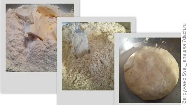 1. Охлажденное, но не мерзлое масло растереть с мукой до крошки. Добавить соль и 2-3 ст. ложки воды, быстро замесить тесто. Постепенно добавить оставшуюся воду. Смотрите по консистенции, чтобы тесто лишь слегка прилипало к рукам.