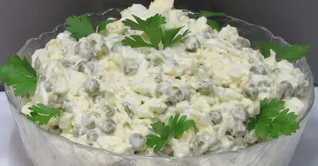 «Чайка». Салат с зеленым горошком и яйцом
