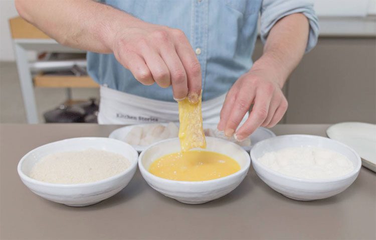 2. Панировка: Подготовьте три миски для панировки – в одной находятся взбитые яйца, в другой мука, а в третьей сухарики панко. Обмакивайте каждый ломтик филе сначала в яйца, затем в муку, и, наконец, в сухарики. Тщательно стряхивайте излишки муки.