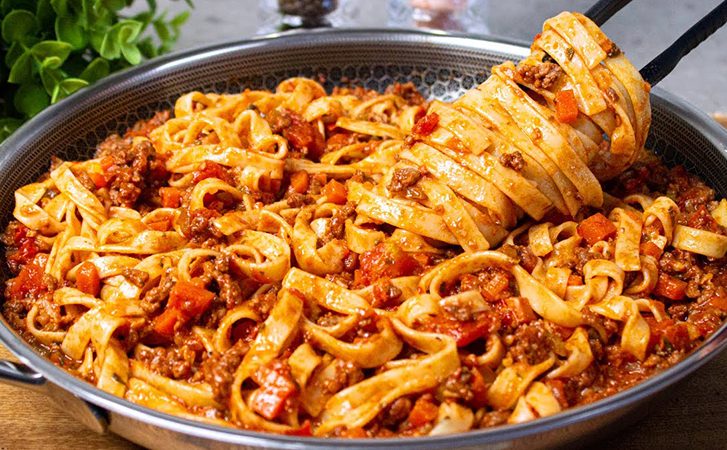 Традиционный рецепт знаменитой пасты Болоньезе требователен ко времени. Соус обязательно томится на минимальном огне около 2 часов, мясо в нем практически растворяется. Только в этом случае паста приобретает идеальный вкус, консистенцию и аромат.