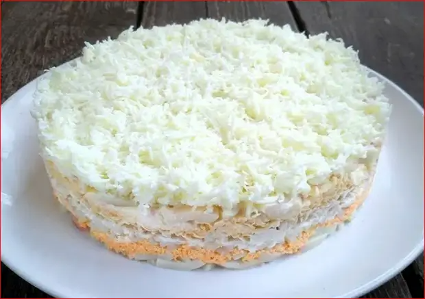 Его сразу хочется попробовать, такой аппетитный салат, который не только украсит любой праздничный стол, но и порадует своим вкусом всех гостей.
