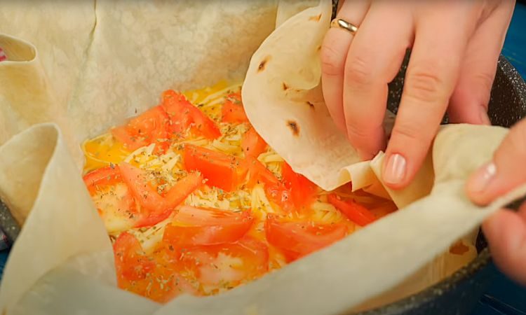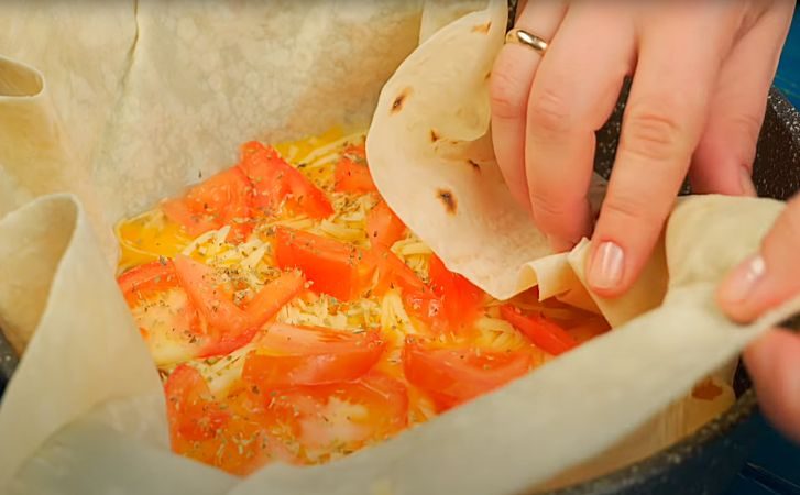 3. Аккуратно заверните края лаваша так, чтобы они полностью закрывали начинку.