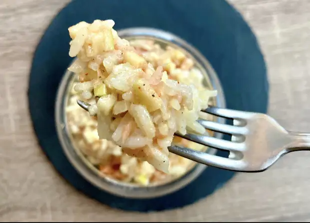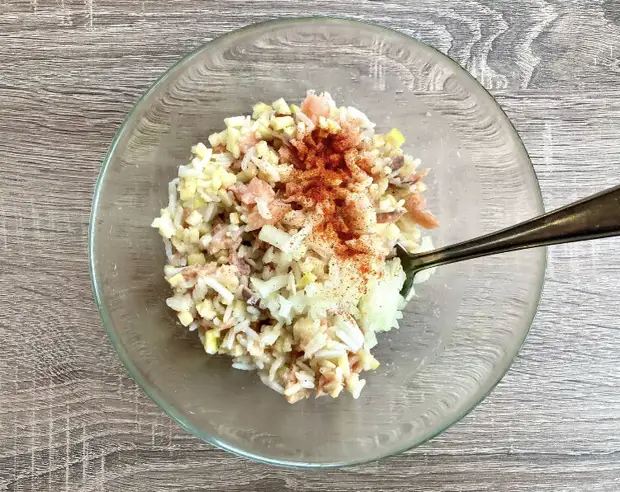 Отвариваем рис, он должен быть рассыпчатым. Остужаем его и отправляем в салатник.