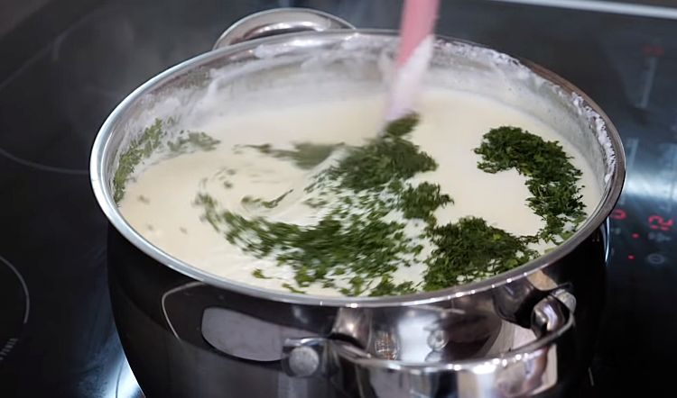 3. Как только масса начнет комковаться, добавьте сухой измельченный укроп, итальянские травы и куркума для цвета.