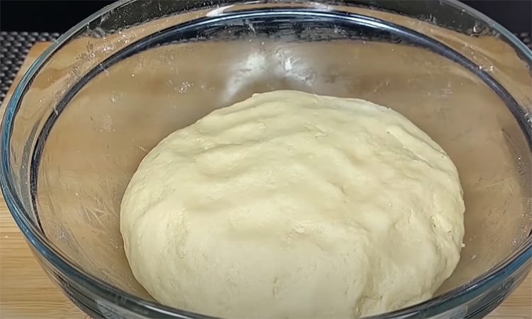 Сначала приготовим тесто. В глубокой тарелке смешиваем сметану, два желтка, 100 г сахара и взбиваем до однородной массы. В другую миску просеиваем муку, добавляем разрыхлитель, ванильный сахар и перемешиваем. Добавляем сюда 200 г сливочного масла и снова перемешиваем. Теперь выливаем сюда сметанную смесь и вымешиваем тесто. Даем тесту отдохнуть 20 минут под пленкой в холодильнике.