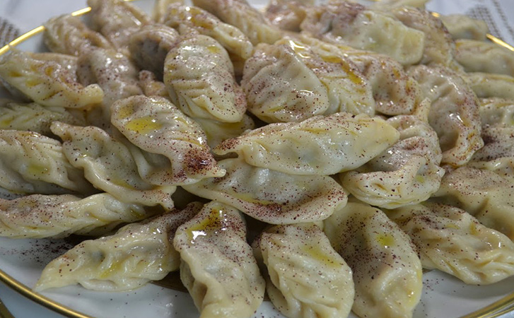 Азербайджанские пельмени гюрзе знающие люди предпочитают более привычному сибирскому варианту. Секрета их вкуса два, первый заключается в тончайшем, но при этом плотном и эластичном тесте. Вторая тонкость кроется в том, что начинкой гюрзе выступает уже обжаренный со специями фарш.