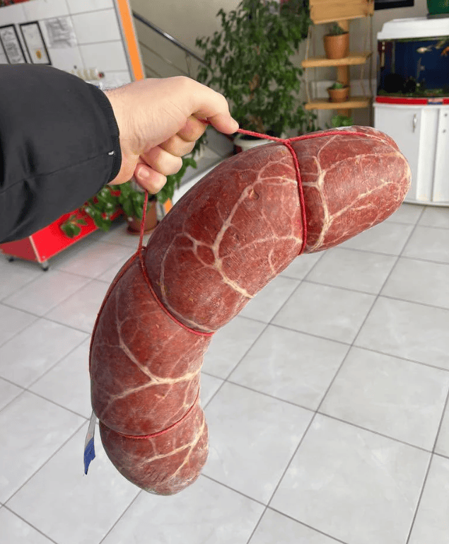 Если соединить эту колбасу и вышеупомянутый багет, получится просто потрясающий и очень сытный бутерброд, которым наверняка получится накормить несколько десятков человек.