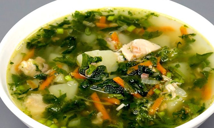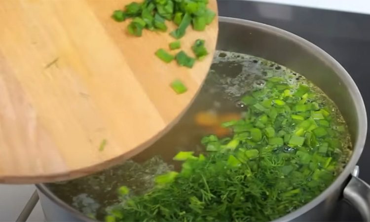 Зеленая уха идеально сочетается со свежей сметаной.
