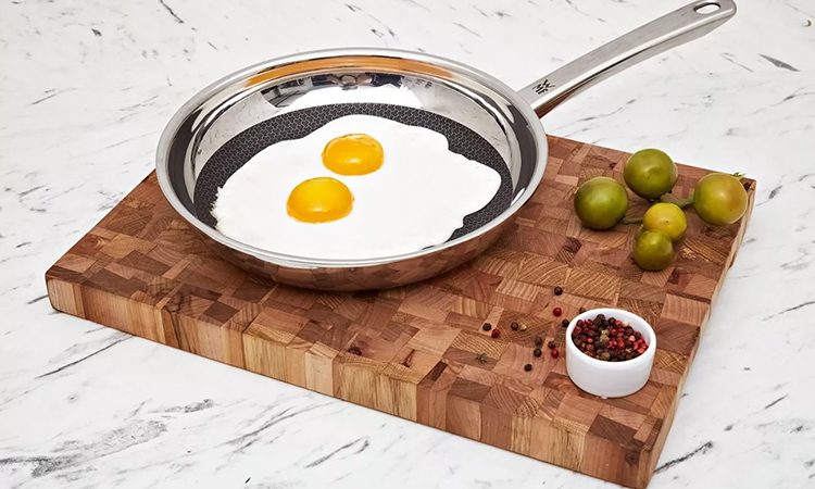 Часто у хозяек не получается готовить на сковороде из нержавеющей стали, так как к ней прилипают продукты и в итоге еда подгорает. На самом деле, готовить на такой сковороде очень просто, блюда получаются вкуснее и в обращении такая кухонная утварь долговечнее.