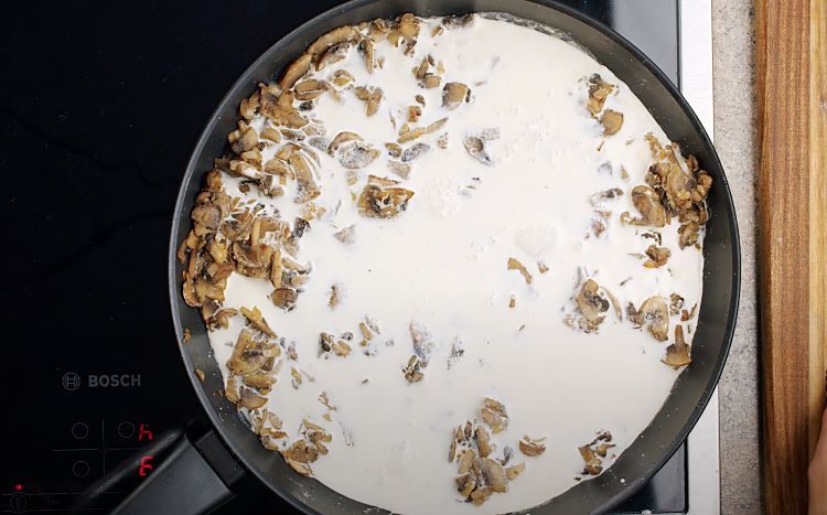 3. Постепенно добавляйте молоко и сливки, постоянно помешивая, чтобы избежать образования комков. Доведите до кипения и варите несколько минут до загустения соуса.