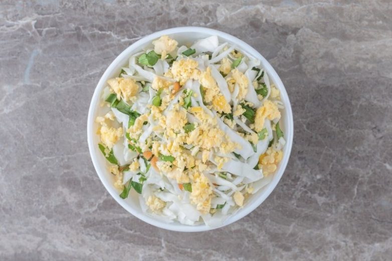 9. Добавьте оставшиеся яичные желтки и распределите по всей поверхности салата.