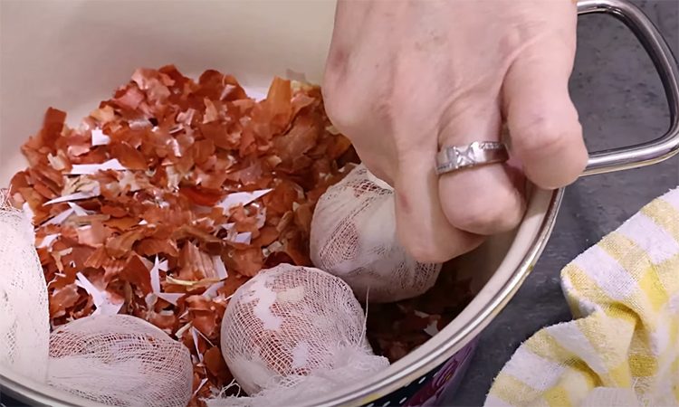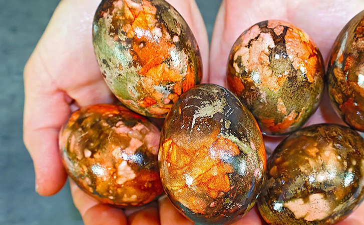 Чаще всего яйца к Пасхе красят в один цвет, используя магазинные красители. Намного лучше будет отказаться от них, взяв на замену только натуральные продукты. При помощи луковой шелухи и гибискуса пасхальные яйца можно сделать невероятно красивыми, словно сделаны они из мрамора.