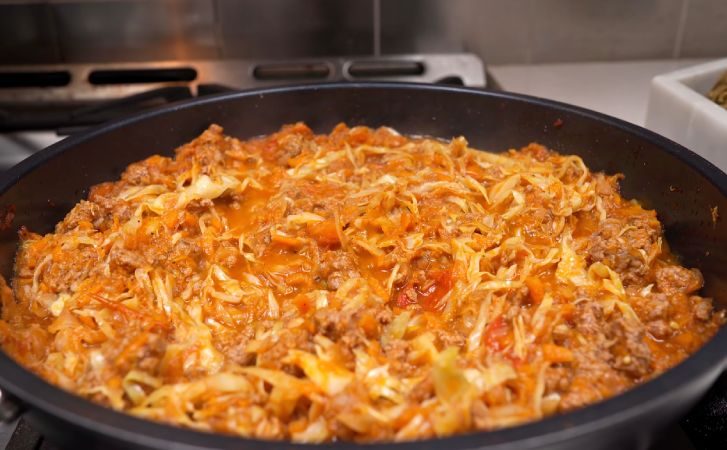 Приготовте полноценное блюдо на целый день, не проводя много времени на кухне. Просто смешайте капусту с фаршем в равных пропорциях, приправьте их томатным соусом, луком и специями. Всего через 25 минут на вашем столе будет ароматное, сытное и вкусное блюдо.