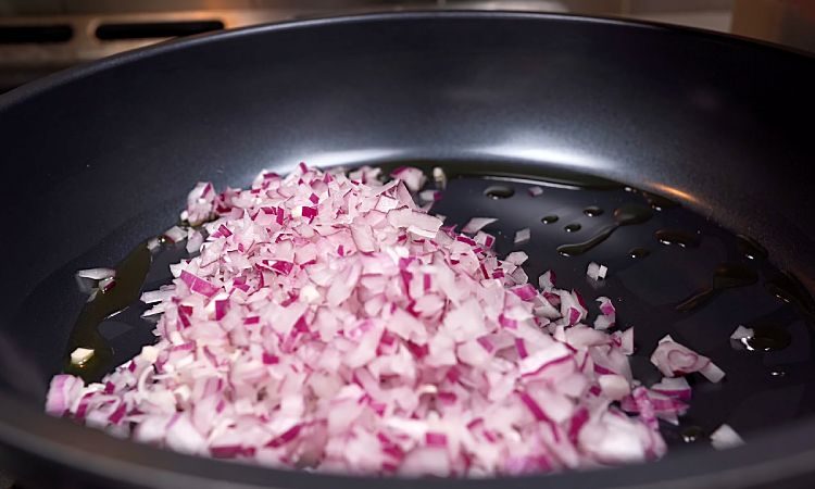 2. Разогрейте сковороду на среднем огне и добавьте немного растительного масла. Добавьте нарезанный лук и обжарьте до мягкости и прозрачности, примерно 3-4 минуты.
