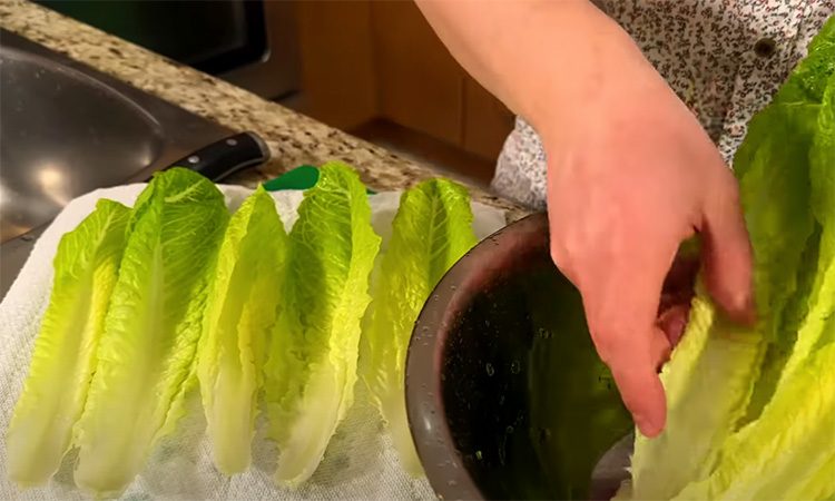 Начнем с промывания и обсушивания салатных листьев. Возьмите листья салата романо (или другие салатные листья) и тщательно промойте их под холодной водой. Обсушите листья, чтобы салатная заправка лучше держалась. Это важный шаг для создания вкусного салата. Приготовьте хрустящие сухарики. Для этого нарежьте хлеб на кубики и обжарьте на сковороде с небольшим количеством масла до золотистого цвета. Это можно сделать на подсолнечном масле. Обжаривайте сухарики до хрустящего состояния. После приготовления сухариков, посыпьте их специями по вашему вкусу.