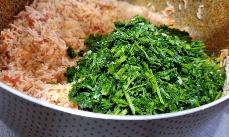 3. Добавьте промытый рис. Продолжайте готовить на среднем огне еще 10 минут, пока рис не будет готов. Последние несколько минут добавьте измельченную петрушку.