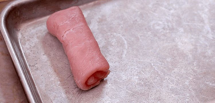 3. На каждый кусок отбитого мяса положите кусочек твердого сыра. Заверните в рулет.