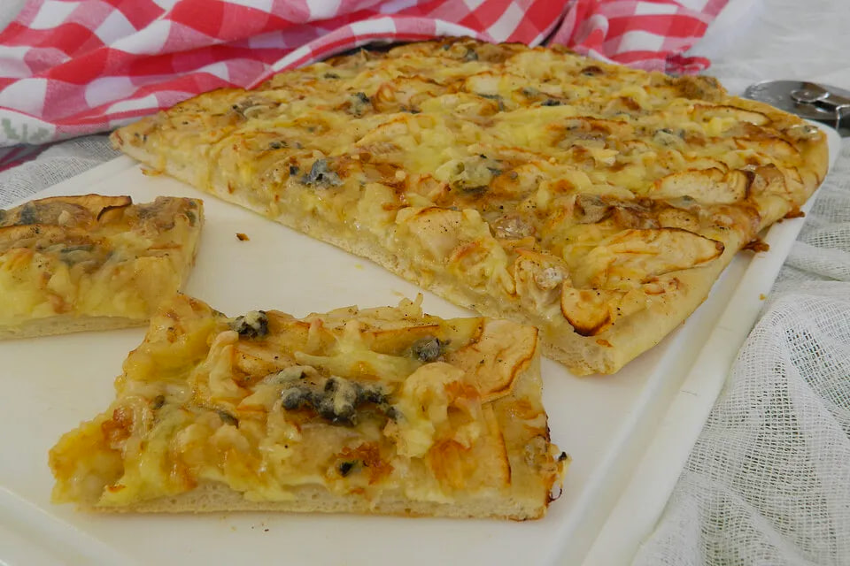 Выходные – время десертов, и сегодня у нас пицца с яблоками и сыром. Вам не кажется такое сочетание привлекательным? Тогда добавлю – сыр будем использовать с плесенью (не весь, конечно, только часть).