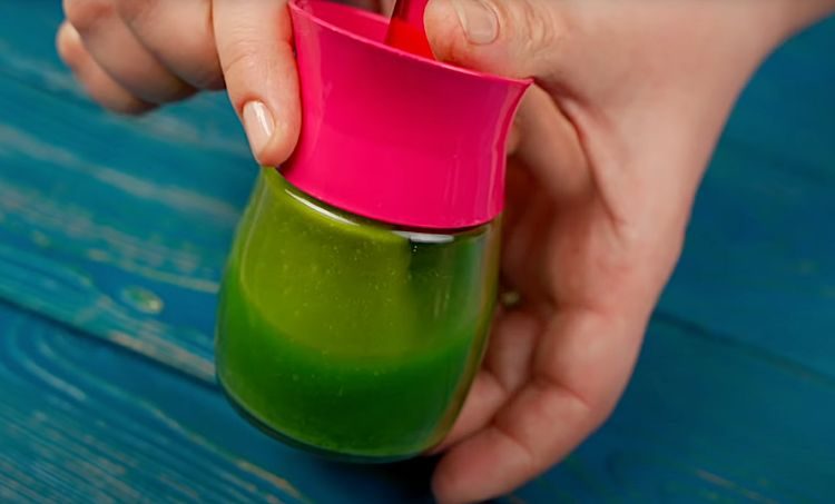 6. Перелейте полученное масло в стеклянную банку или флакон с крышкой. Закройте крышкой и храните в холодильнике. Изумрудное масло готово к использованию.